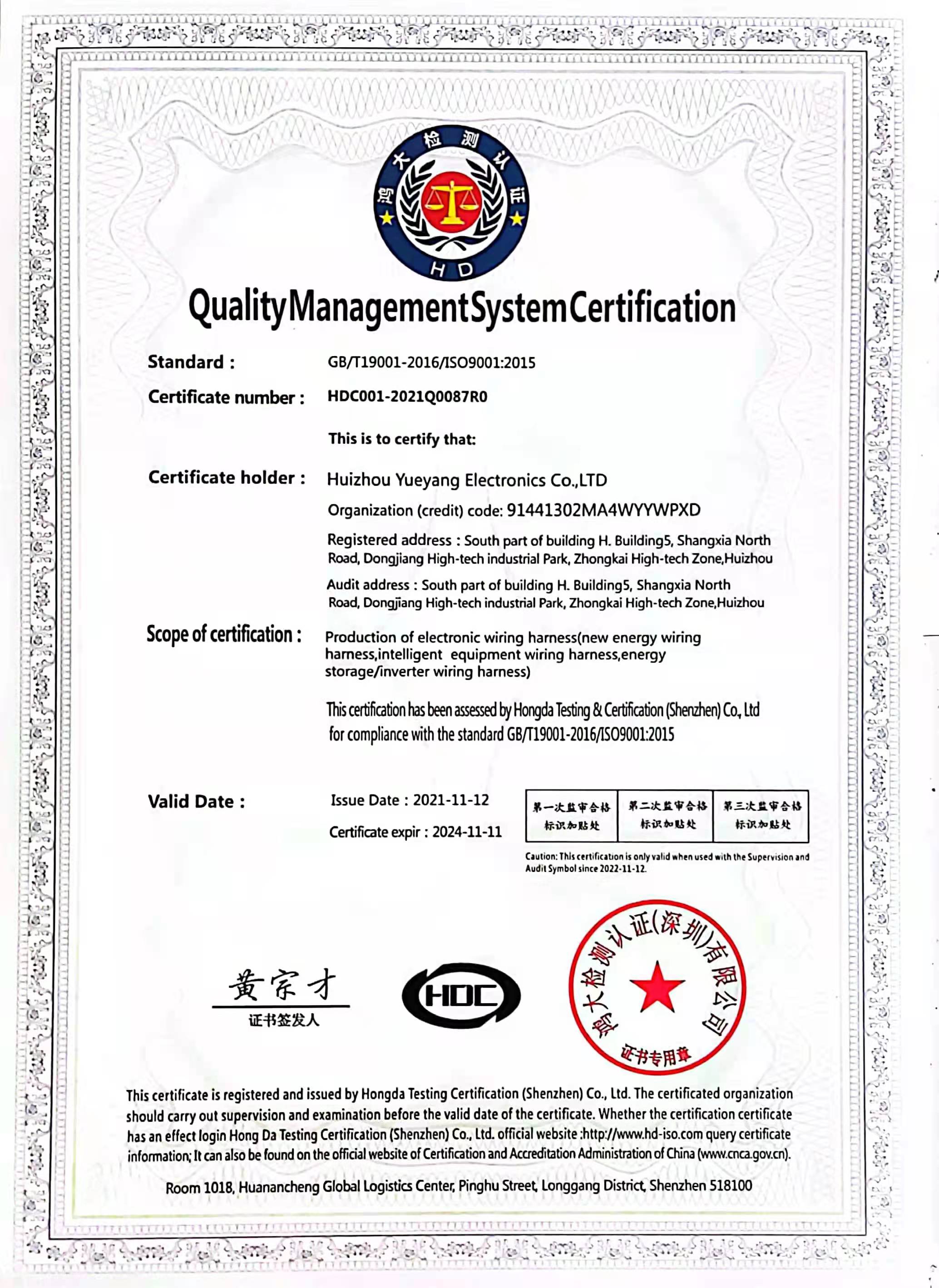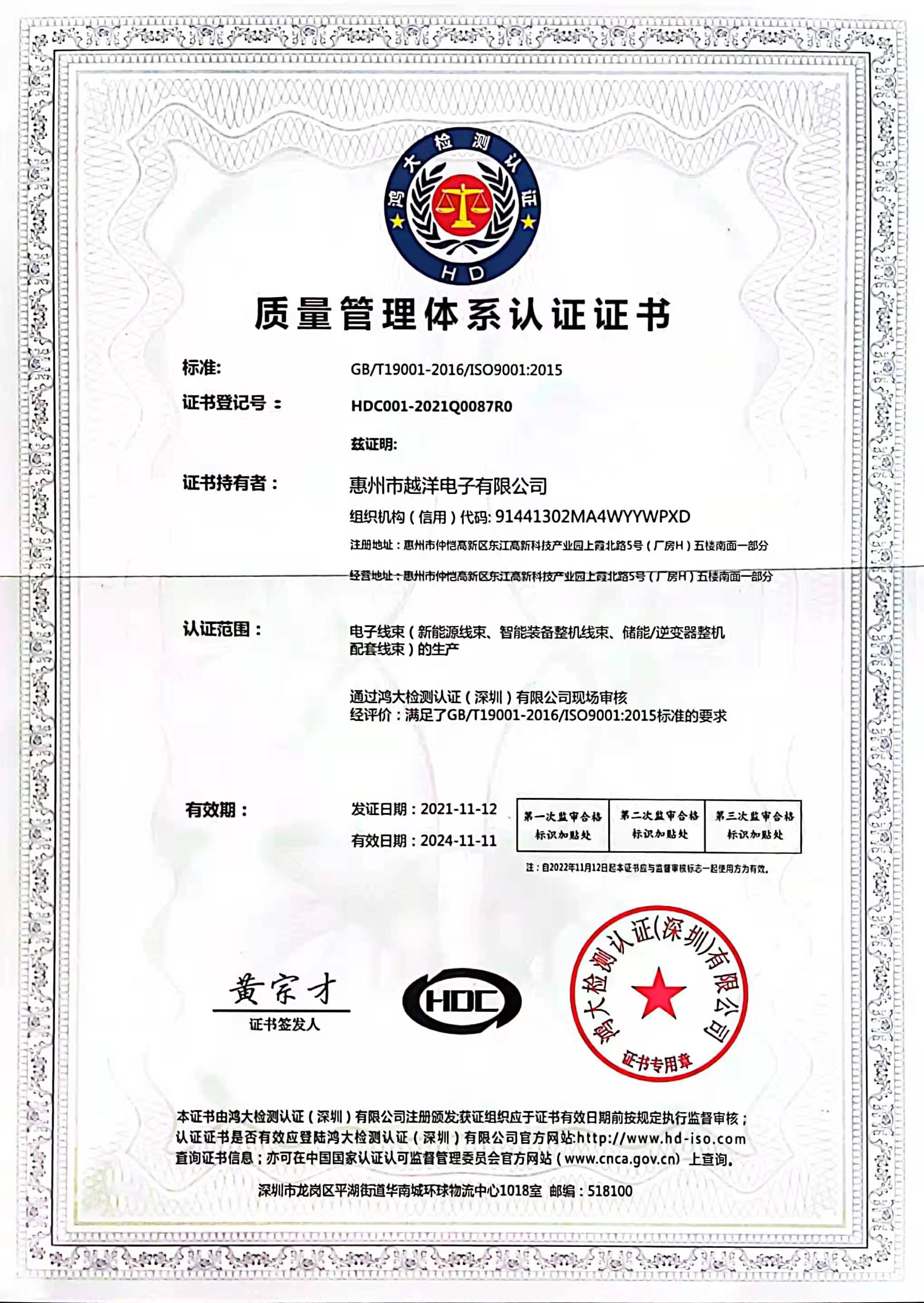• 質(zhì)量管理體系認(rèn)證證書(shū)